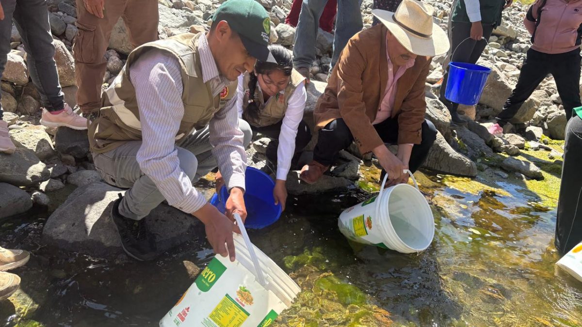 Con el propósito de fortalecer la seguridad alimentaria, dinamizar la economía local y promover el aprovechamiento sostenible de los recursos hídricos, el Ministerio de la Producción (PRODUCE), a través de la Dirección General de Acuicultura, lideró la siembra de alevinos de trucha (Oncorhynchus mykiss) en el río Chiri, ubicado en el distrito de Mollepampa, provincia de Castrovirreyna.